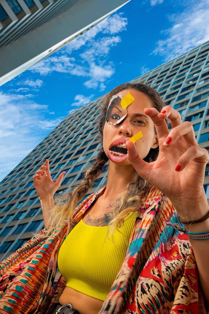 Para criar os visuais que acompanham “Destrambelhada”, Bruna Pena também encontrou inspiração na infância, quando decorava seus próprios cadernos com recortes de revistas. Utilizando técnicas como stop motion e colagem, ela apostou na sobreposição analógica e digital de imagens para traduzir graficamente o conceito e as suas intenções com a música.