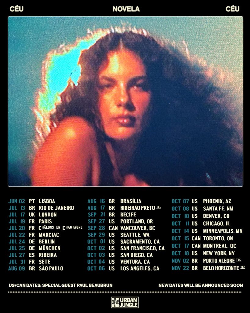 As tramas da vida cotidiana inspiraram Céu a refletir sobre a complexidade e a beleza da existência humana na criação de seu sexto álbum de estúdio, Novela, que conquistou 1 milhão de plays nas plataformas de áudio na primeira semana de lançamento. Em novo capítulo do folhetim, as faixas poderão ser ouvidas ao vivo na turnê, que passará por São Paulo no dia 9 de agosto. O show, que acontecerá na Audio, terá a participação de Liniker.