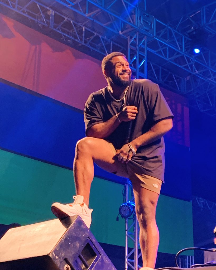 Baco Exu do Blues comandou o show seguinte no palco ao lado. Com uma introdução poderosa que trazia diversos ícones mundiais da cultura preta, o cantor entrou no palco arrancando gritos de uma plateia ávida por suas músicas. Acompanhado também de uma banda excelente, fica o destaque para as três vocalistas que tomam a cena em vários momentos do show e brilham com o artista, como no cover de “Espumas ao Vento”, canção original de Fagner, e que emocionou a plateia. Outros hits como “20 ligações”, “Me desculpa Jay-Z” e “Lágrimas” também estiveram presentes no show energético e inesquecível de Baco.