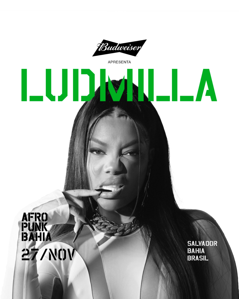 Após anunciar o patrocínio ao maior festival de cultura negra do mundo, Budweiser encontrou a forma perfeita para celebrar a parceria com o AFROPUNK: viabilizar um grande show de Ludmilla para agitar o evento. Artista da marca, a cantora, assim como Bud, fará sua estreia no evento e se apresentará no palco Gira, no dia 27 de novembro. A primeira grande edição da América Latina do AFROPUNK no Brasil terá 22 horas de shows e mais de 30 atrações, entre nomes nacionais e internacionais, e acontecerá nos dias 26 e 27 de novembro, no Parque de exposições, em Salvador, na Bahia.