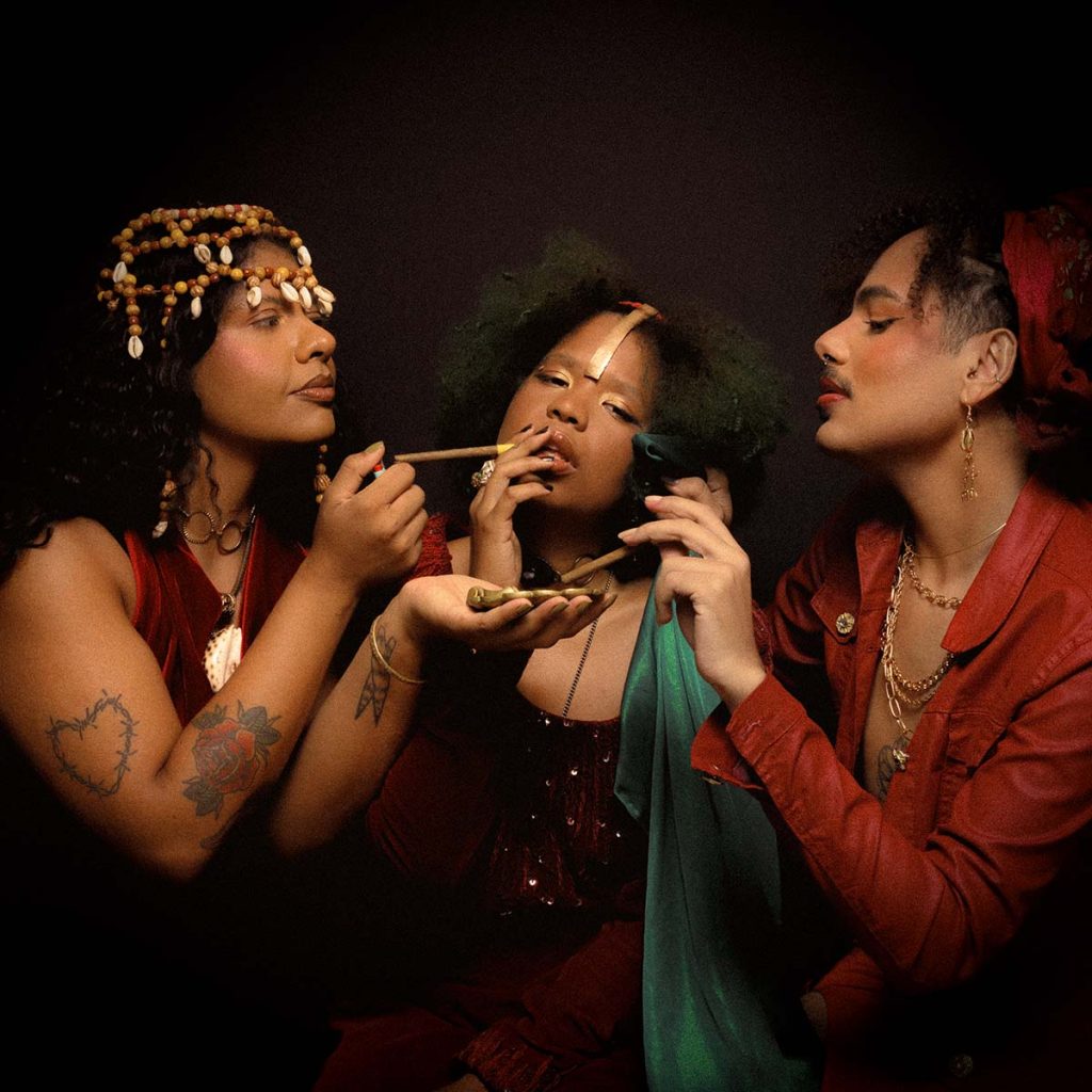 “Eu sou uma pessoa não-binária e nós somos uma banda queer, formada por artistas LGBTQIAPN+ que têm a espiritualidade afro diaspórica presente em nossas vidas. Ao trazer isso para o vídeo, reforçamos a nossa crença de que a ancestralidade é ampla e está além dos terreiros, sendo vivenciada também na maneira como cuidamos uns dos outros e construímos as nossas comunidades”, diz o vocalista.