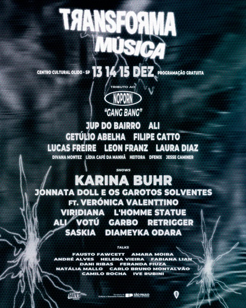 O evento reúne artistas renomados como Karina Buhr, Jup do Bairro, Getúlio Abelha, L’homme Statue e Filipe Catto. Além dos shows gratuitos, o festival também contará com debates, performances e uma mostra de videoclipes voltada à cultura LGBTQIAPN+. Sob a curadoria de Ali Prando e León Franz, o Transforma Música se consolida como um espaço de subversão artística e celebração das expressões dissidentes que desafiam o convencional.